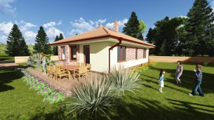 Bungalov upravený dle individuálních požadavků s garáží. BUNGALOV 1je dom strednej veľkostnej kategórie. Přesah střechy nad terasou u obývacího pokoje je praktický a nedocenitelný.